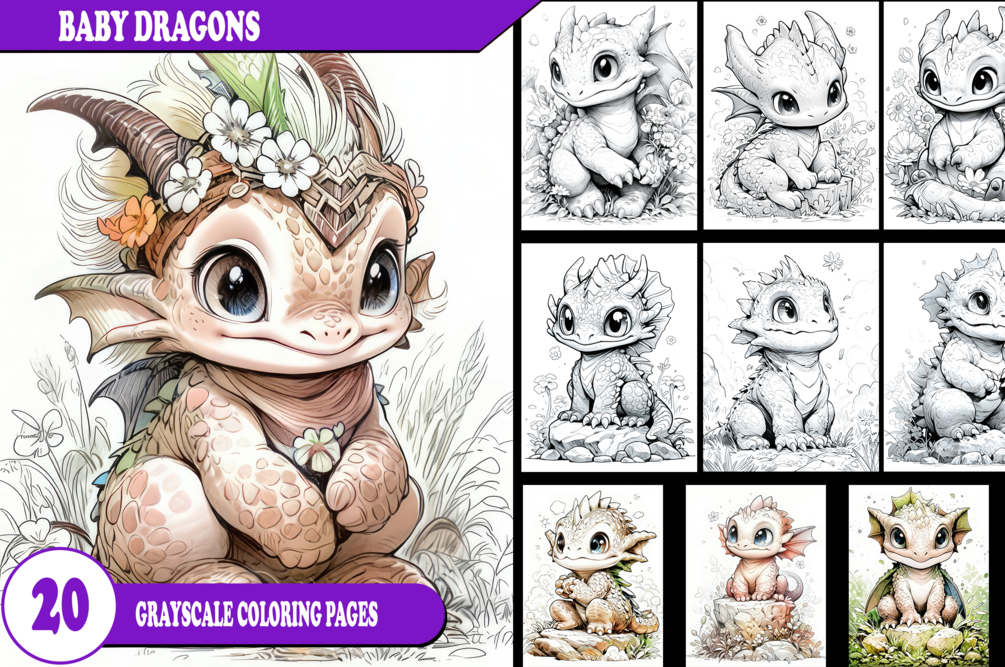Welcome to the enchanting realm of "Baby Dragons " a mesmerizing grayscale coloring book that will transport you to a world of tranquility and ignite your creative spirit. Immerse yourself in the intricate beauty of grayscale illustrations, where the subtle shades of gray serve as a canvas for your imagination to breathe life into adorable baby dragons. With each stroke of your coloring pencils, embark on a journey of self-expression, relaxation, and artistic fulfillment.