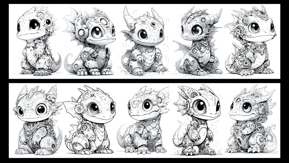 Baby Dragons - Mechanic: Grayscale Coloring Book